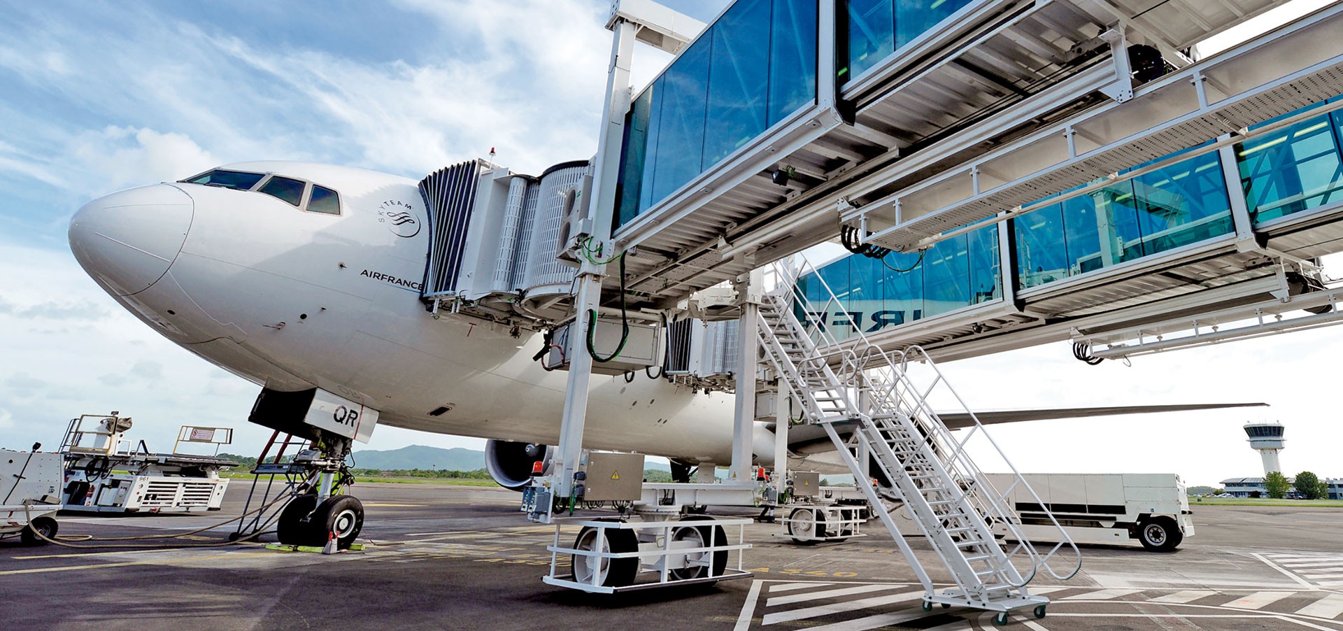 Airport Passenger Boarding Bridges (PBBs), including Apron Drive, A380 Apron Drive, and Nose Loader types: ADELTE provides telescopic bridge configurations designed for different stand layouts and aircraft types, with features positioned around safe, fast docking maneuvers and tailoring to apron configuration needs, including Apron Drive flexibility for varied docking heights and Nose Loader designs for restricted parking areas.
