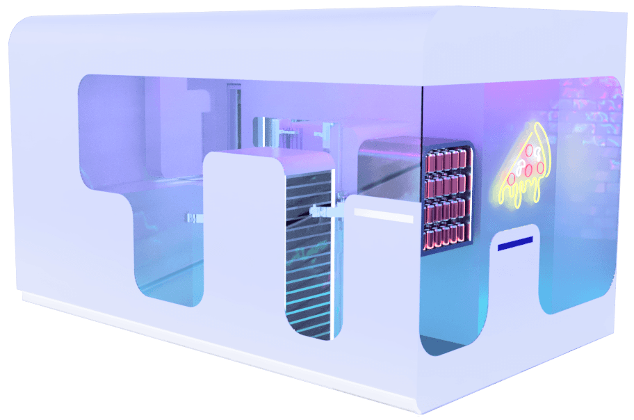 Frenzza: Fully autonomous pizza-making robot that prepares fresh, customizable pizzas 24/7 using locally sourced ingredients, featuring AI-driven precision, self-cleaning, seamless digital ordering, high food safety, and remote monitoring for consistent quality and convenience.